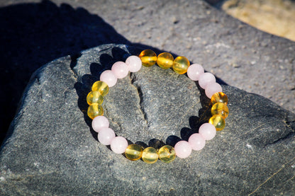 Cuando tu piel se calienta el ámbar liberará ácido succínico que proporciona efectos antiinflamatorios y analgésicos, el ácido succínico es también usado para tratamientos anti edad, ayuda a reducir el dolor, el estrés y la ansiedad, en el caso de los bebés el uso del ámbar por sus efectos antiinflamatorios les ayuda a llevar de mejor manera su proceso cuando le salen los dientes, los bebés pueden comenzar a utilizar el ámbar desde poco antes que le comiencen a salir los dientes, durante y después del proceso, el ámbar es seguro, debe usarse correctamente con la supervisión de un adulto.